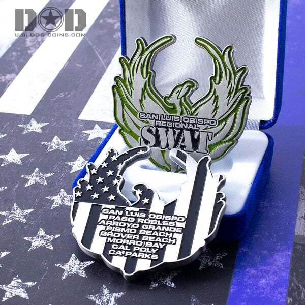 U.S. DOD Coins believes that the superiority associated with challenge coins is not considered as often as it should be for recognizing our everyday heroes. The taking of first steps, like graduating from the police academy, to elite training like SWAT is a celebration for which law enforcement police challenge coins aptly commemorate the occasion.